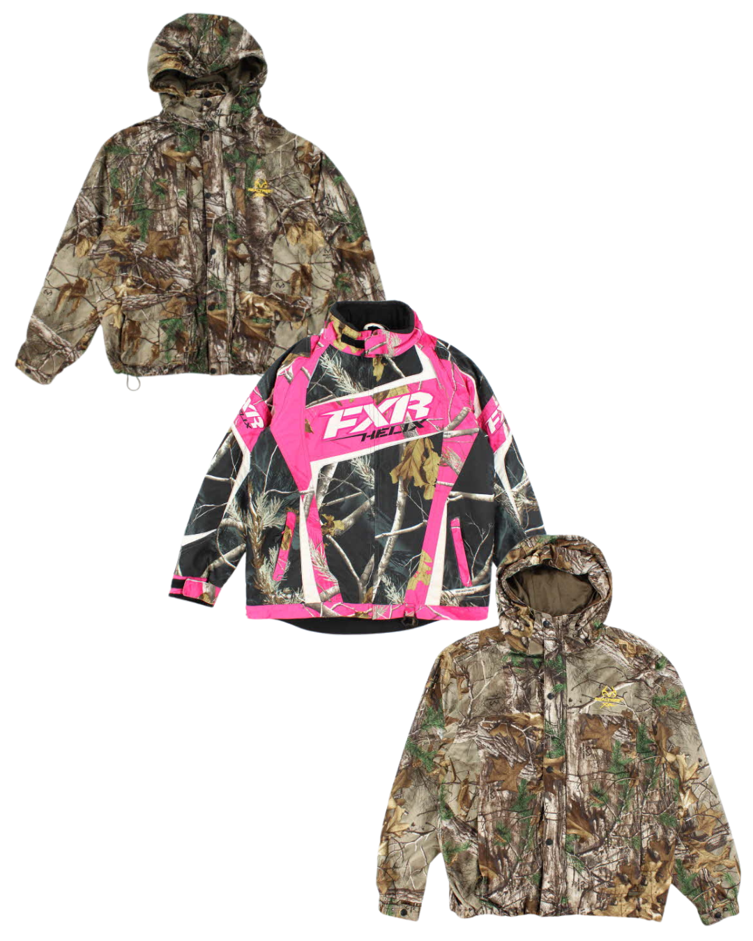 Jackets with Realtree and camo prints – includes hunting, outdoor and Y2K streetwear-ready styles. Perfect for gorpcore edits.