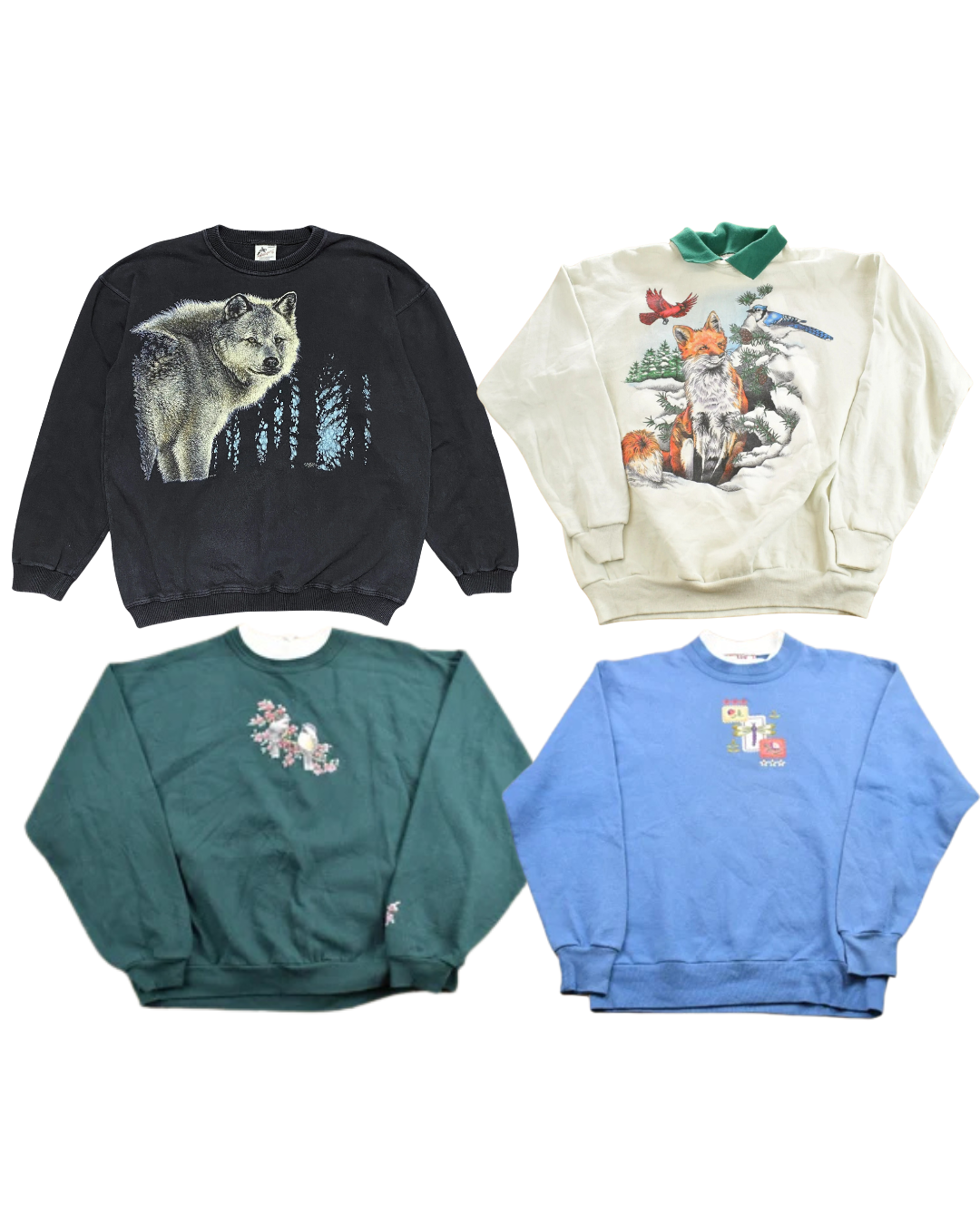 Sweatshirts featuring wildlife, nature scenes and vintage cartoon characters. Cosy and full of personality.