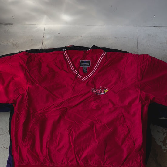 A collection of unbranded pullover windbreakers in a range of colours, sizes and styles. Some plain and some embroidered.